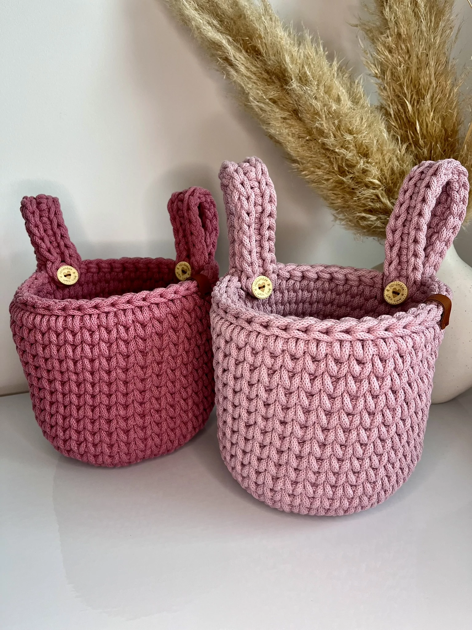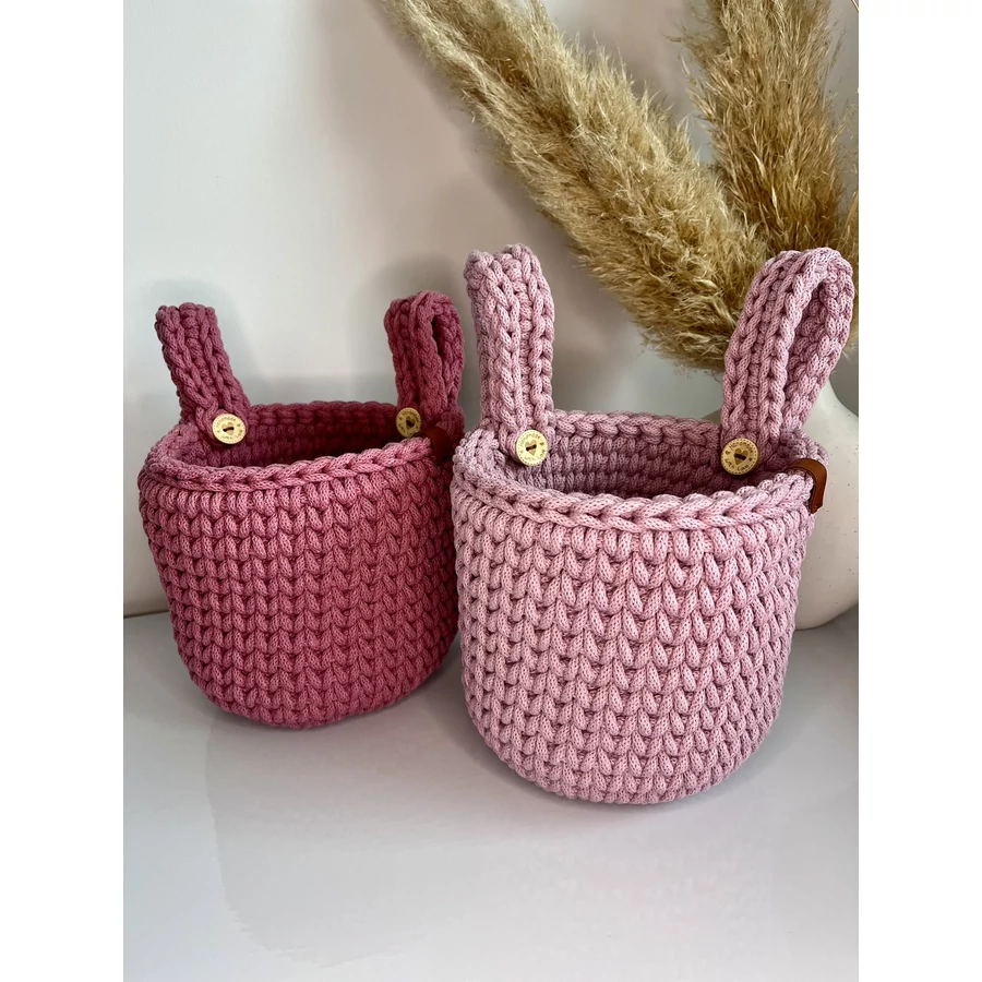 A tárolók kézzel horgolt, 100%-ban újrahasznosított, bababarát prémium pamut zsinórfonalból készülnek, így teljesen biztonságosak a legkisebbek számára is.